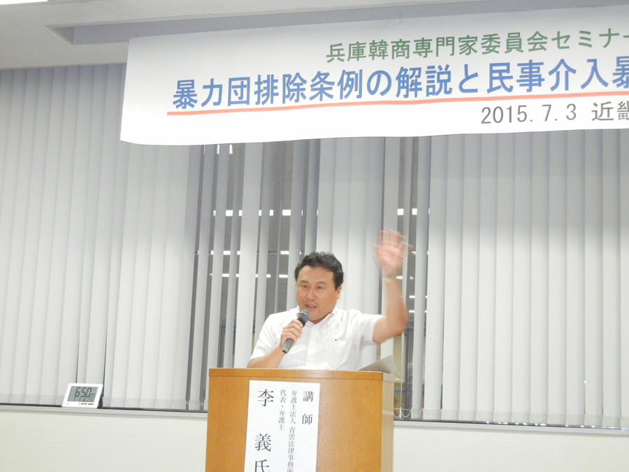 兵庫韓商 専門家セミナー 「暴力団排除条例の解説と民事介入暴力対策の実務」開催