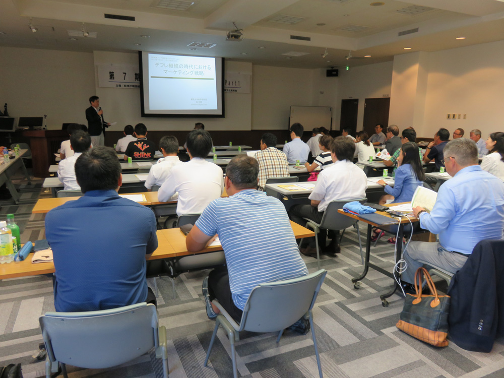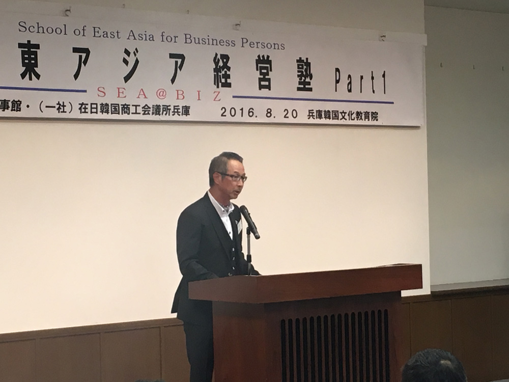 去る8月20日、第7期目となる「東アジア経営塾(SEA@BIZ)」のパート1を、兵庫韓国文化教育院で開催しました。 今期の経営塾は、駐神戸韓国総領事館と当会議所(兵庫韓商)が共催して開催しており、後援には兵庫県・神戸市・神戸商工会議所・(一社)在日韓商・日本ケミカルシューズ工業組合・在日インド商業会議所・大韓貿易投資振興公社大阪・世界韓人貿易協会大阪支会、兵庫青商などに後援協力を頂いて開催しています。 東アジア経営塾(SEA@BIZ)は、これまで通り理念を「商即人~商売とは“利益”を残すことではなく“人”を残すことである~」とし、今期の主題は「環境変化に対応できるビジネスデザインの構築~三都市-大邱・神戸・今治の経営者が語る物語」としています。 第1回目は、キックオフセミナー「デフレ継続時代におけるマーケティング戦略」を崔相鐵委員(関西大学商学部教授)が行い、△デフレ時代の雄たちの苦戦、△日本消費者の消費パターンの変遷、△消費喚起制作の錯覚効果~需要の先食い、△回復しない消費心理とデフレ・アゲイン時代の到来、△デフレ継続時代における優良企業のマーケティング戦略~大創産業(ダイソー)、・鳥貴族・アイリスオーヤマのマーケティング戦略、△デフレ継続、グローバル展開に耐えられるロバストデザインの構築などに関して学びました。 また続いて、「若手経営者へのメッセージ」と題した特別講演を、趙珉一 ㈱兵庫宝不動産代表・兵庫韓商副会長から頂戴しました。講演では△経営身条~“商即化”“商即風”“商即人”、△経営者の仕事とは、△現場で実際に打った手・手段、△“瀬戸際”できずいたこと、△中国の人たちについてなど30年近くにわたって経営の最前線で学び・培ってきた経営哲学などに関して様々なエピソードも交えながら聴講しました。 また第二部のメンバーシップパーティーでは、辛輝浩会長の乾杯音頭に続き、参加者間で懇親を深めるとともに、塾生からの自己紹介・PRや各委員からの挨拶など親睦を深めました。