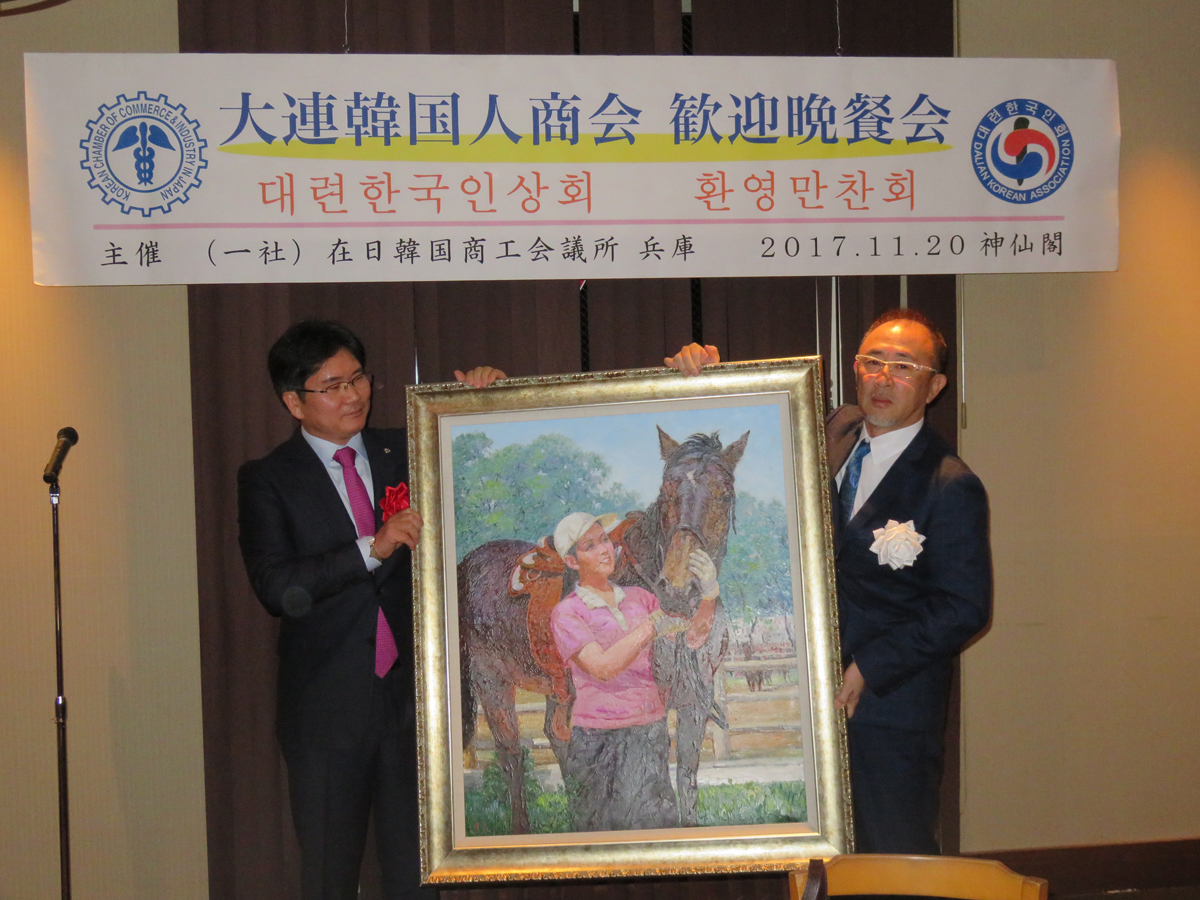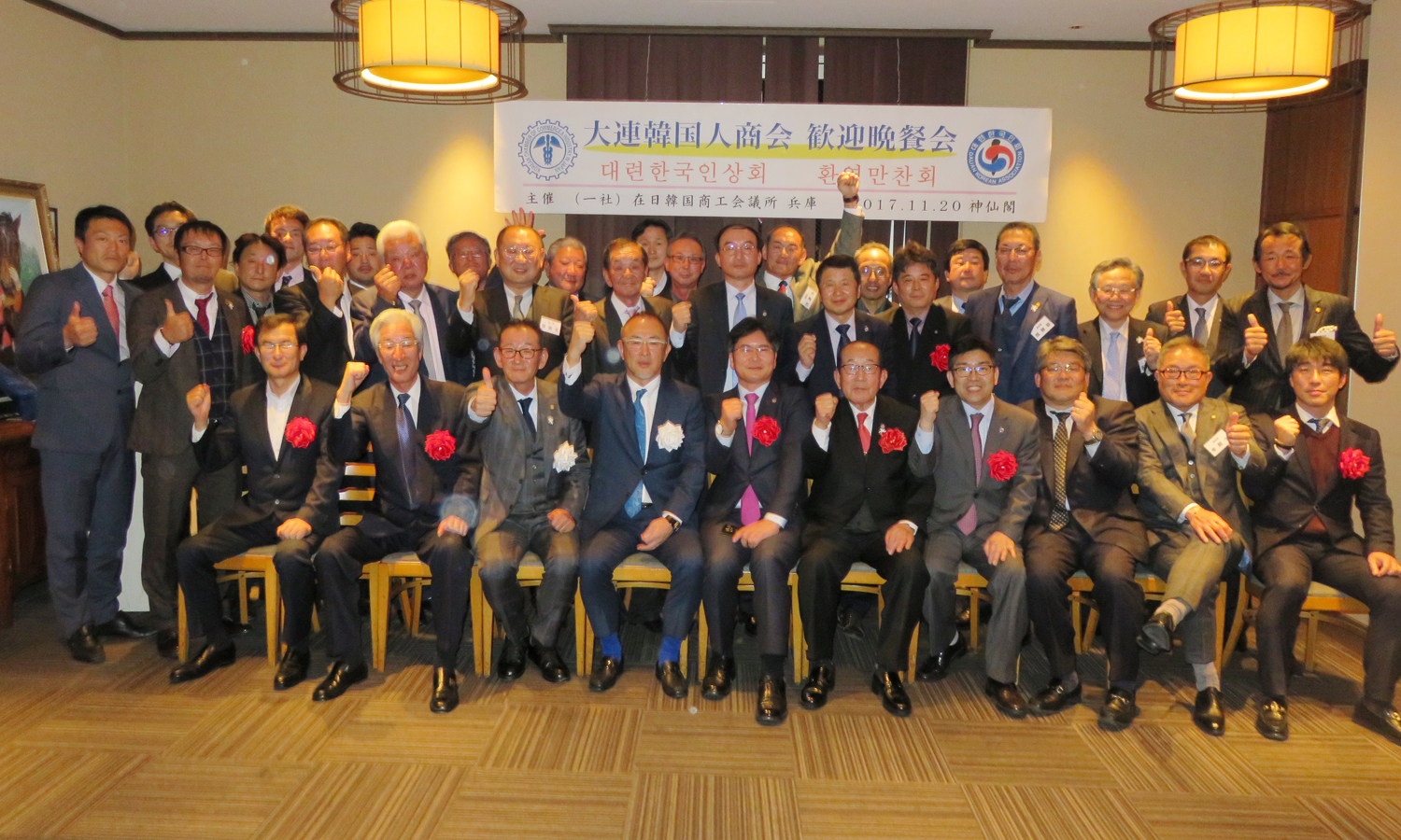 去る11月19日~22日にかけて、当会議所と姉妹結縁団体である中国の大連韓国人商会(朴シノン会長)役員一行が来県し、交流事業を開催しました。 この大連商会の来県交流事業は、今年9月に当会議所役員一行が大連商会を表敬訪問した返礼として開催されたもので、大連紹介からは朴シノン会長、崔龍洙名誉会長、鄭昌鎬顧問(直前会長)、柳鍾輝主席副会長、文ソンミン諮問委員長、朴鍾薰名誉諮問委員、黄成淵諮問委員が来県しました。 11月20日開催した「大連韓国人商会 歓迎晩餐会」には、康常益領事、朴大成領事、新井康夫日本ケミカルシューズ工業組合理事長、車得龍兵庫韓国文化教育院理事長、郭里志兵庫青商会長などの来賓と大連商会、当会議所役員など約40名が参加して開催しました。 晩餐会では辛輝浩会長が挨拶で「今年9月の大連訪問時に年内訪問を約束し、今回大連商会を迎えることができ大変嬉しく思います。滞在中の企業視察、名所観光、親睦事業等を通じて更に大連商会とのパートナー関係が深まることを願います」と延べました。続いて朴シノン大連商会会長からは「兵庫韓商の受け入れに心から感謝します。中国の言葉に“花一つが咲けば春が来るのではなく、百種類の花が満開になってこそ春が来る”とあるように、この相互訪問を機に今後より多くの交流と協力を進めましょう」と延べました。続いて康常益領事から祝辞、贈り物交換等を行い、宋玉植名誉会長の乾杯で歓談に入り親睦を深めました。 また滞在中は、企業視察としてマキウラ鋼業㈱(姫路市、宋玉植代表)を訪問し製鋼原料リサイクル設備等の見学、鉄鋼業界の現状レクチャー等を受けました。その他にも姫路城などの名所観光や両会役員による親睦ゴルフコンペ(マスターズGC、オリムピックGC)なども開催し交流を深めました。さらに両会役員の懇談では、継続的に情報交換等を進めるとともに、会員企業の取引支援活動等も今後積極的に行うことでも合意するなど充実した交流事業となりました。