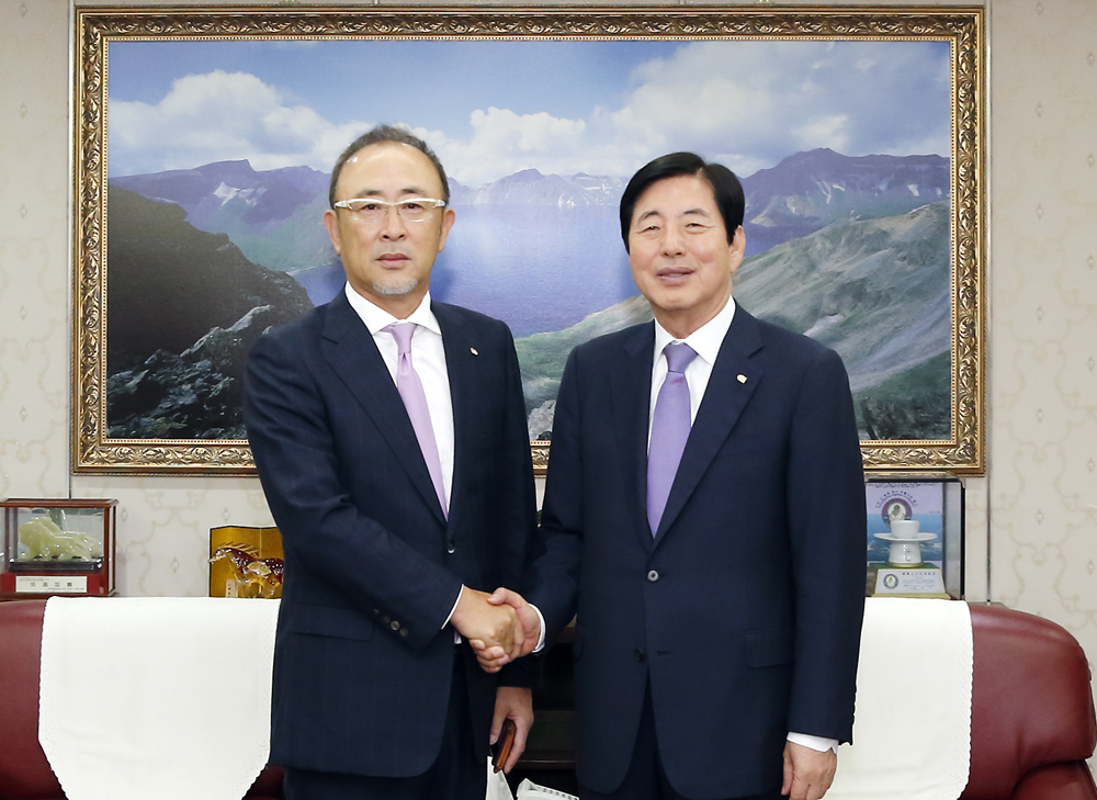 姉妹結縁団体の釜山商工会議所 表敬訪問 許龍道 新会長の就任を祝う