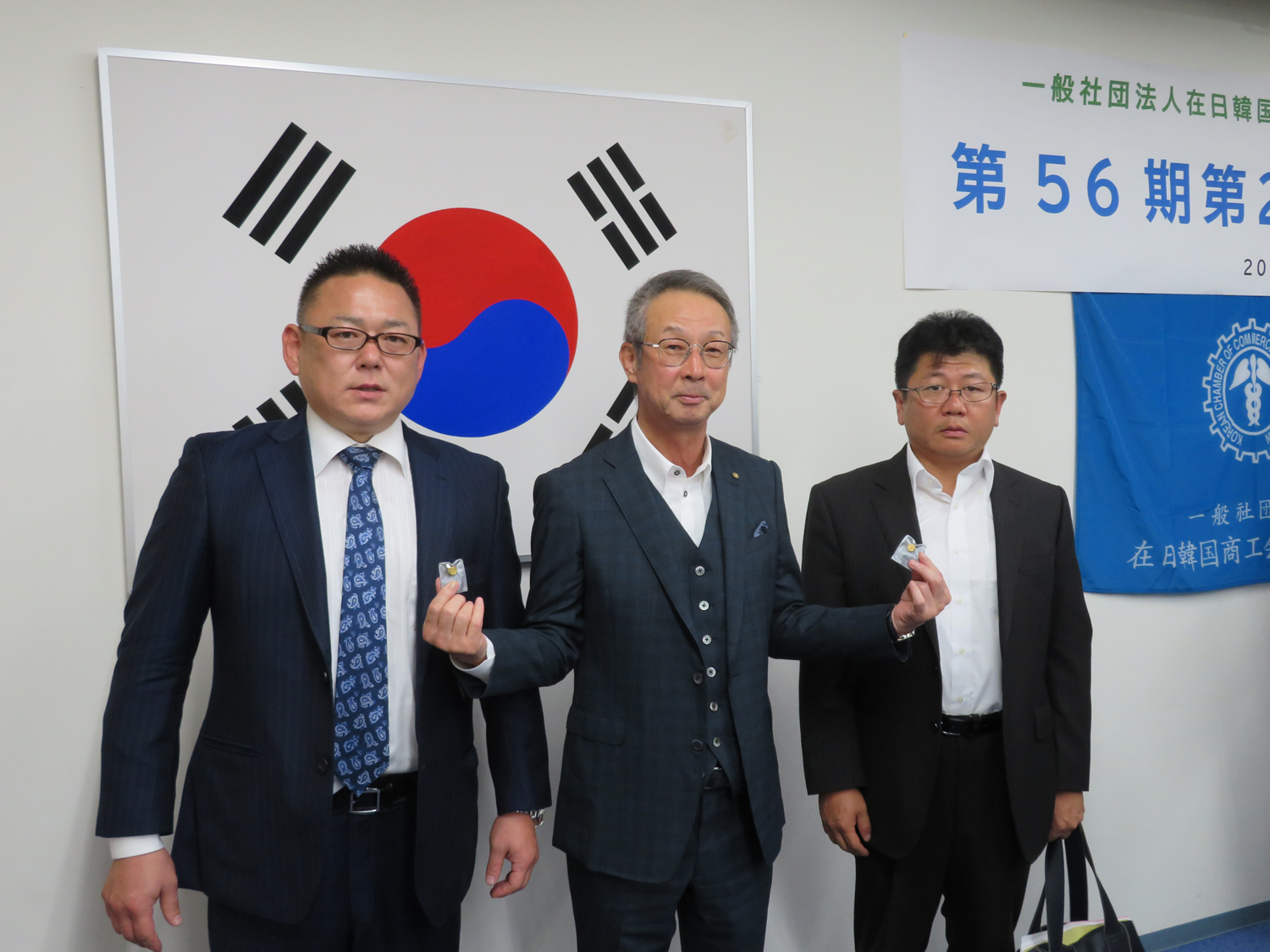 | 第56期第2回理事会 | 左から鄭尚明新理事、趙珉一会長、 金一貴新理事 |