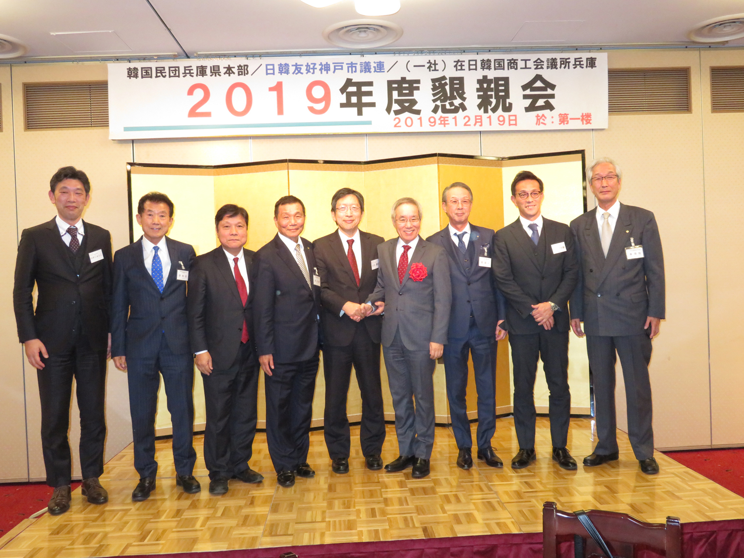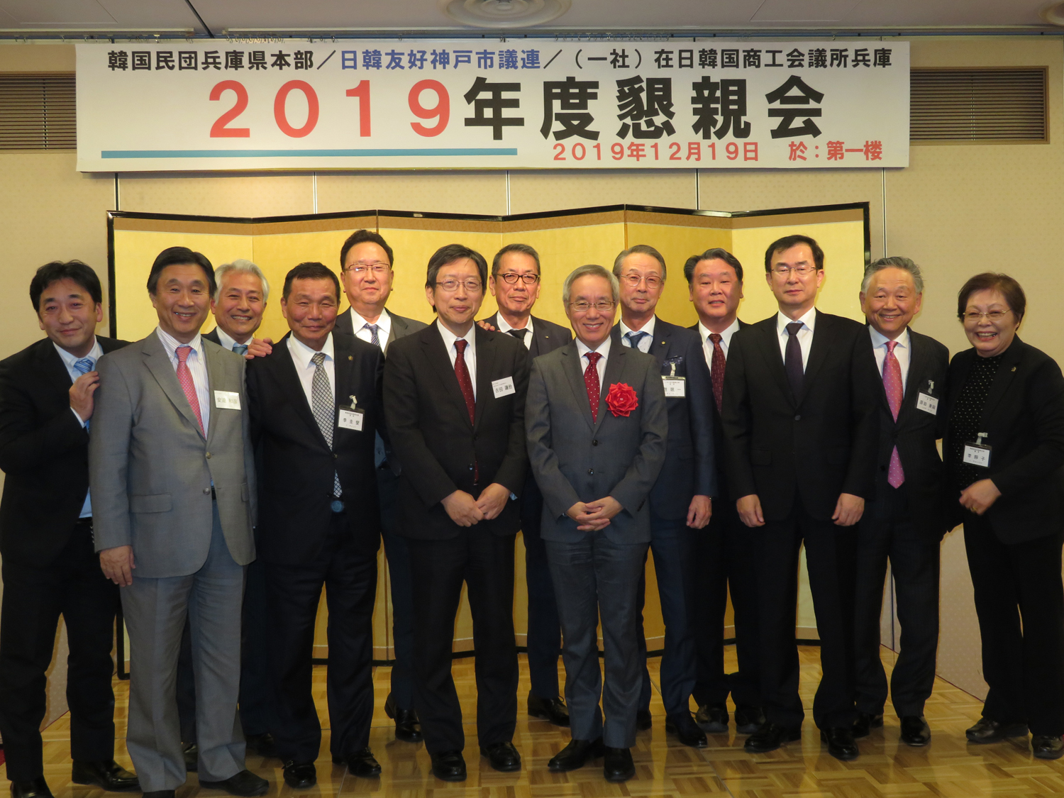 日韓親善兵庫県議・民団兵庫・兵庫韓商の3者共催 第19回「2019年度懇親会」開催。約60名が参加。