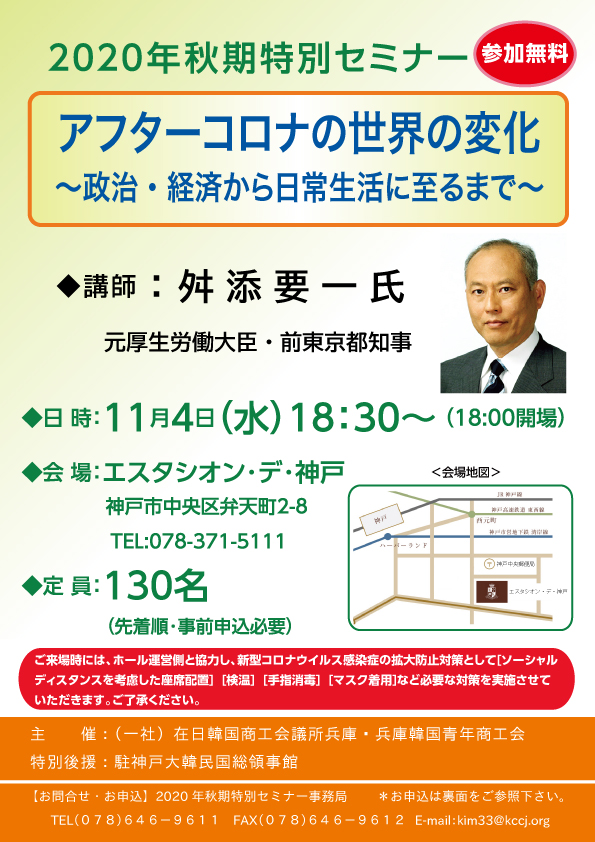 この度、私ども兵庫韓商と兵庫青商が共催し、元厚生労働大臣・前東京都知事の