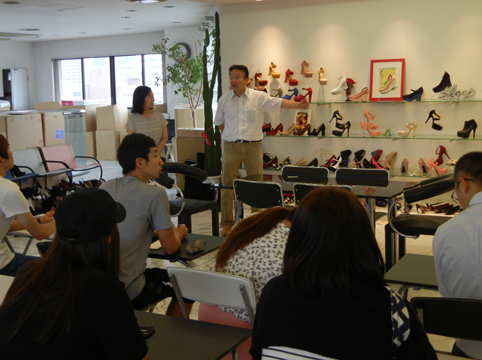 去る8月4日、韓国の弘益大学学生のインターンシッププログラムに協力しました。 このプログラムは、昨冬に続いて2回目で、同大学の国際経営学科と金融保険学科に所属する学生(9名)を対象とする関西地域でのインターンシッププログラムです。同大学の金雄基助教授が中心となって進めており、関西韓国YMCAが全面協力して開催しています。学生たちは同事業を通じて、企業実務理解並びに在日コリアン社会への理解と日本語能力の向上を目指し参加しています。 当会議所の協力内容は、神戸市の地場産業であり、在日同胞多数が従事するケミカルシューズ産業の視察と兵庫韓商の組織紹介です。 現場視察には当会議所の会員企業でもあり、日本ケミカルシューズ工業組合副理事長でもある婦人靴製造メーカーの㈱青山(青山哲夫代表)社にご協力頂き、婦人靴が出来上がるまでの一連の作業工程の見学や青山代表・スタッフとの意見交換などを行い学生たちはとても熱心に学んでいました。