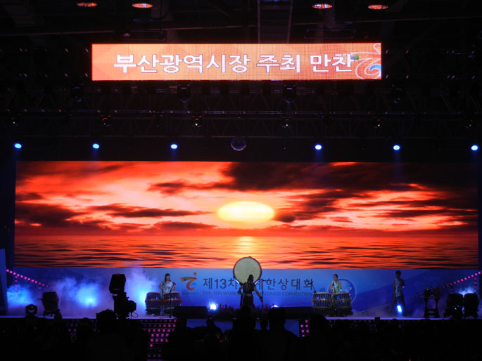 釜山市長主催晩餐会での民族楽器披露 |